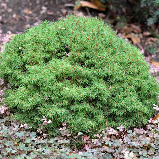 Petit conifère à port compact globuleux et à feuillage vert clair. Sans exigence particulière sur le sol ou l'exposition.| Silhouette du végétal | Boule |